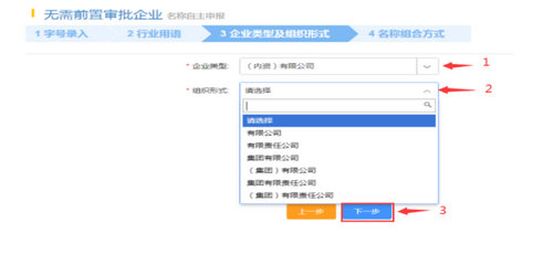 选择相应的“企业类型”“组织形式”,点击“下一步”。