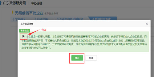 查看承诺信息,勾选点击“确认”。