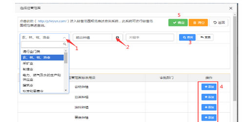 方式二、选择行业门类,行业类型,再点击“查询”,进行“添加”,点击“确定”(如图)。
